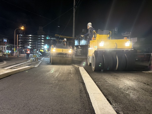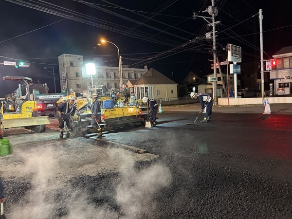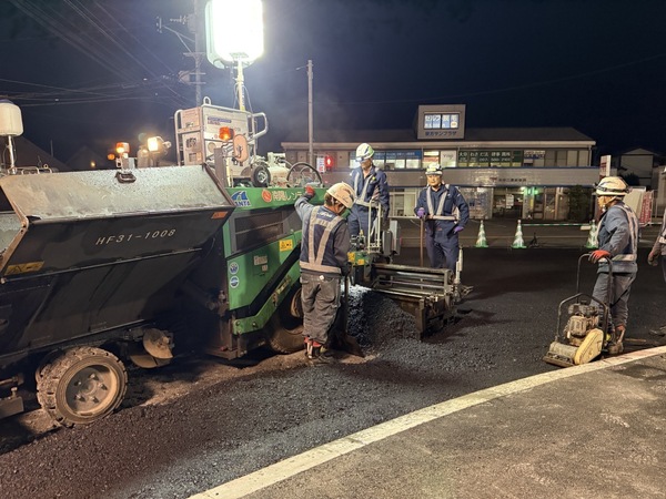 先日、夜間工事を行いました。 2025.09.29 先日、大分市の宗方にて夜間工事を行いました昼間は交通量が多く、地域の皆様へのご負担を最小限にするため、夜間に作業を実施しました。安全第一を徹底し、スタッフ全員で声を掛け合いながら、舗装工事を計画通りに進めることができました。夜間にも関わらずご協力いただい近隣の皆様、そして通行されたドライバーの皆様に心より感謝申し上げます。これからも地域の皆様の安心・快適な暮らしを支えるため、安全で丁寧な施工を心がけてまいります。 先日開催された『あそまなフェス』に参加してきました! >